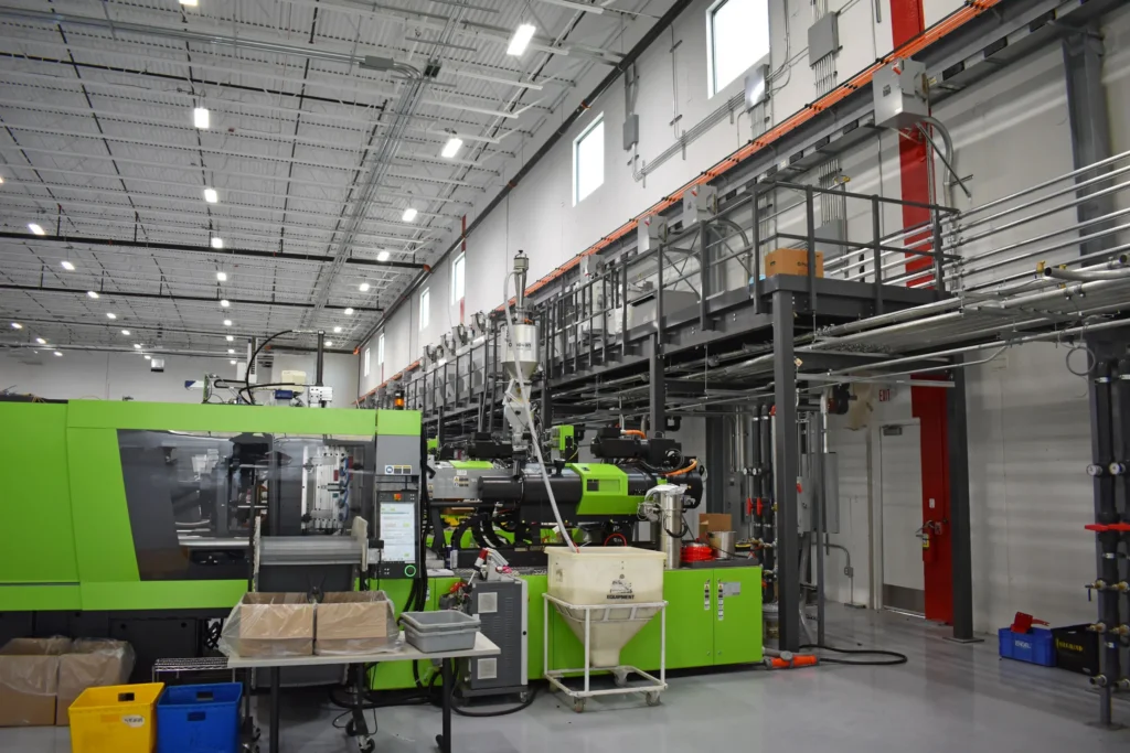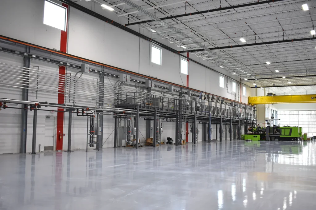 Unique challenges overcome during the construction process included reinforcing, sloping, and sealing the slab properly for the heavy equipment and hazardous materials. Sound dampening and conditioned sorting booths were late additions which were able to be incorporated in the phase 1 build. This green recycling facility is a large investment for Axium and will help them achieve a more sustainable supply chain in the future.